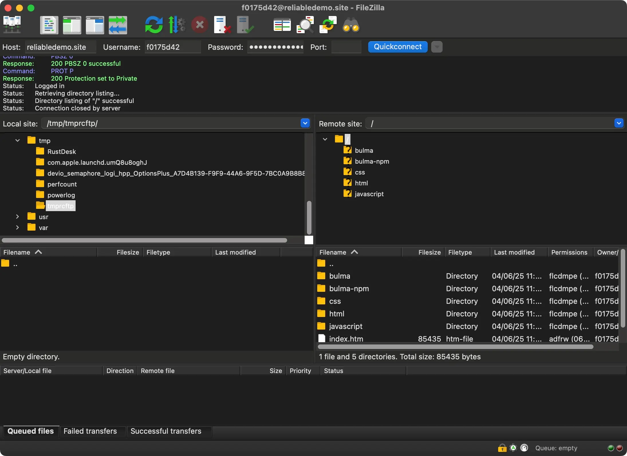 After you provided the details to your client application (also called FTP client), it will connect to the server.